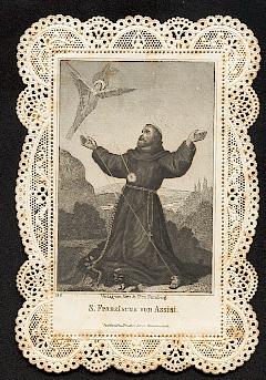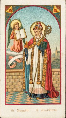 Mehrfarbige Lithographie um 1900 von Soc. St. Augustin / Brügge, 111 x 71 mm, leicht gebrauchsspurig.