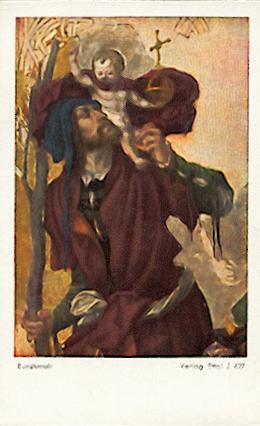 Mehrfarbiger Offsetdruck nach Gemälde in der St. Anna / München. Ca. 1954, 110 x 70 mm, tadellose Erhaltung.