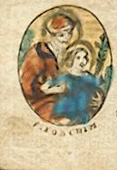 Mehrfarbig handkolorierter Kupferstich (wohl Antwerpen) 18. Jh., 50 x 34 mm, ordentliche Erhaltung.