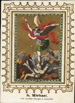 Mehrfarbige Lithographie um 1900 von Kühlen / Mönchengladbach im Stile der Beuroner Kunstschule. 100 x 55 mm, minimal gebrauchsspurig.