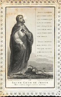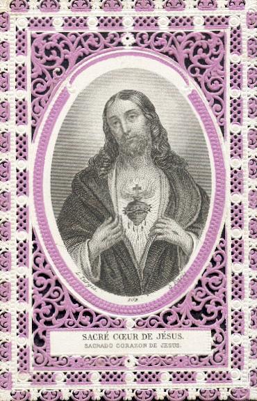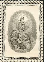 Lithographie mit Präge-Stanz-Spitze um 1855, 71 x 52 mm, Rückseite handschriftl. zeitgenössische Widmung dat. 1858, guter Zustand.