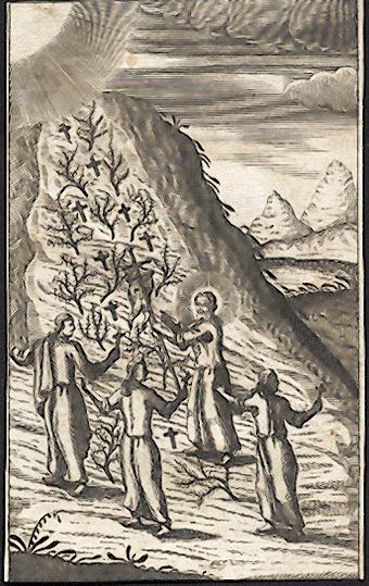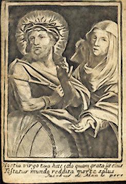 Kupferstich auf Pergament von Jacobus de Man Antwerpen 18. Jh.,  93 x 64 mm., saubere Erhaltung, links bis knapp in die Einfassungslinie beschnitten. Seltene Darstellung.