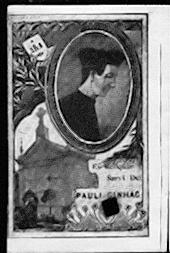 Brauner Druck mit Sekundär-Reliquie um 1925, 118 x 76 mm, leicht gebrauchsspurig und fleckig. # Selten !#