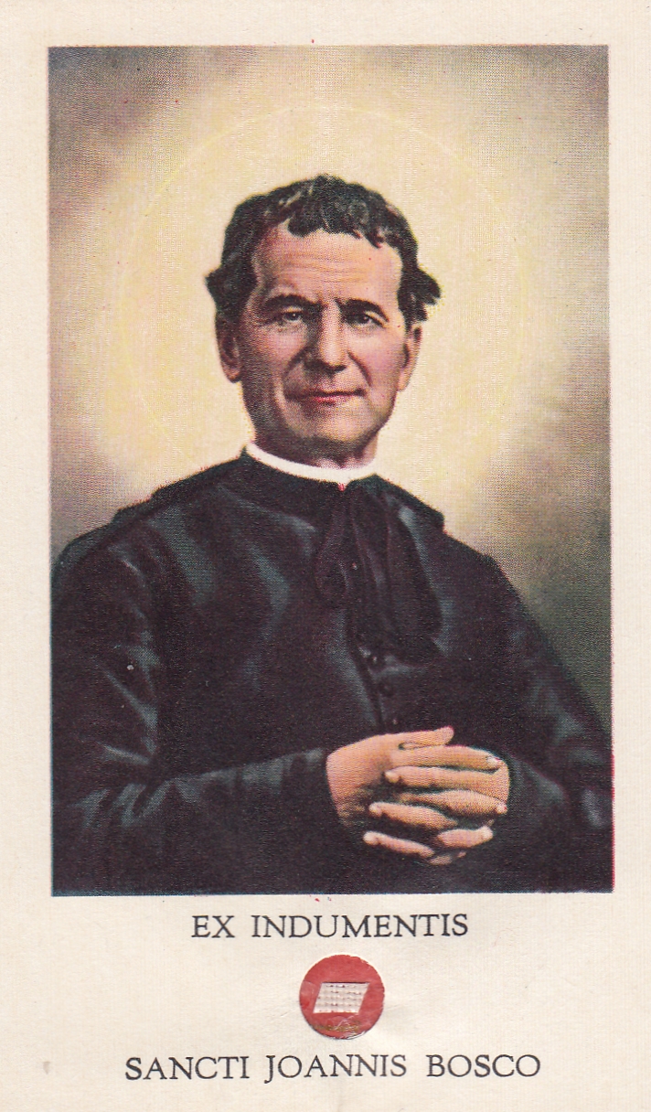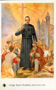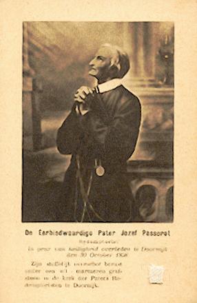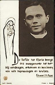 Brauner Druck mit Sekundär-Reliquie (Textil) um 1916, 125 x 75 mm, Rückseite: Gebet in niederländisch schönes Exemplar – sehr selten! # Herstellung wohl noch vor seiner Seligsprechung 1955 – 1999 wurde er heiliggesprochen. #
