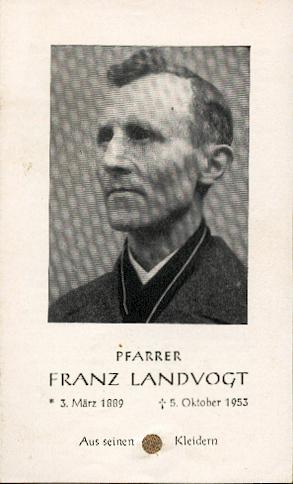 Offsetdruck mit Sekundär-Reliquie (“Aus seinen Kleidern”) auf 4 seitigem Gebetszettel. Innen mit Siegel Pfarramt St. Peter Mainz. 125 x 75 mm, gutes Expl.