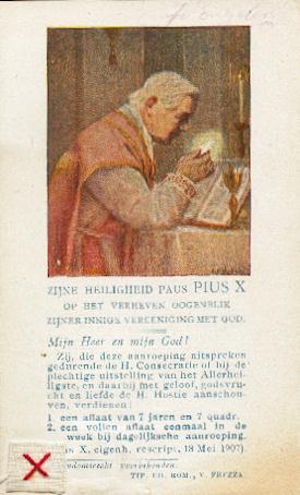 ( 1863-1931) Offsetdruck mit Sekundär-Reliquie (Textil) 1935, 115 x 64 mm, mit Gebet in niederländisch. etwas knick u. gebrauchsspurig .