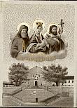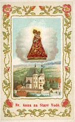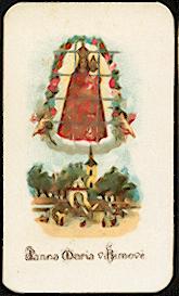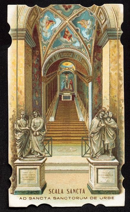 Mehrfarbige Lithographie um 1910 mit Randstanzung, Rückseite mit deutscher Geschichte der Hl. Stiege. 116 x 66 mm, tadelloser Zustand.