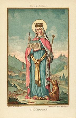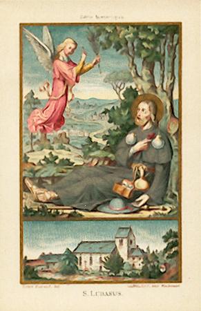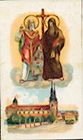 Mehrfarbige Lithographie von Gangloff / Mulhouse um 1910, 117 x 76 mm, tadellos. Patron der Winzer ! Selten und gesucht !