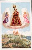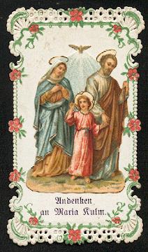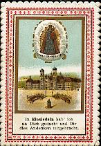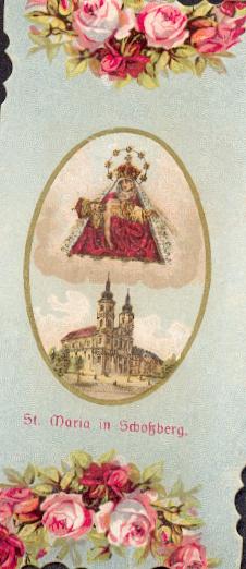 Mehrfarbige Lithographie goldgeprägt von Benziger / Einsiedeln um 1880, 94 x 56 mm, minimal gebrauchsspurig.
