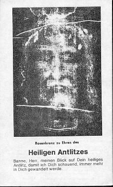 * Kopfausschnitt des legendären Turiner Grabtuches – hier in Form eines Gebetszettel zur Aufnahme in die Bruderschaft vom heiligen Antlitz*