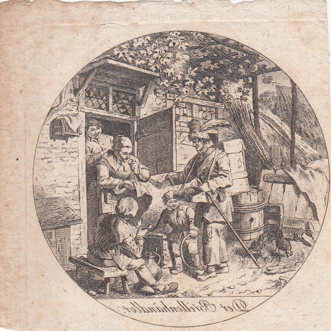 Kupferstich 17. Jh. / Anfang 18. Jh., 90 x 90 mm, ordentl. Erhaltung, Schrift spiegelverkehrt !