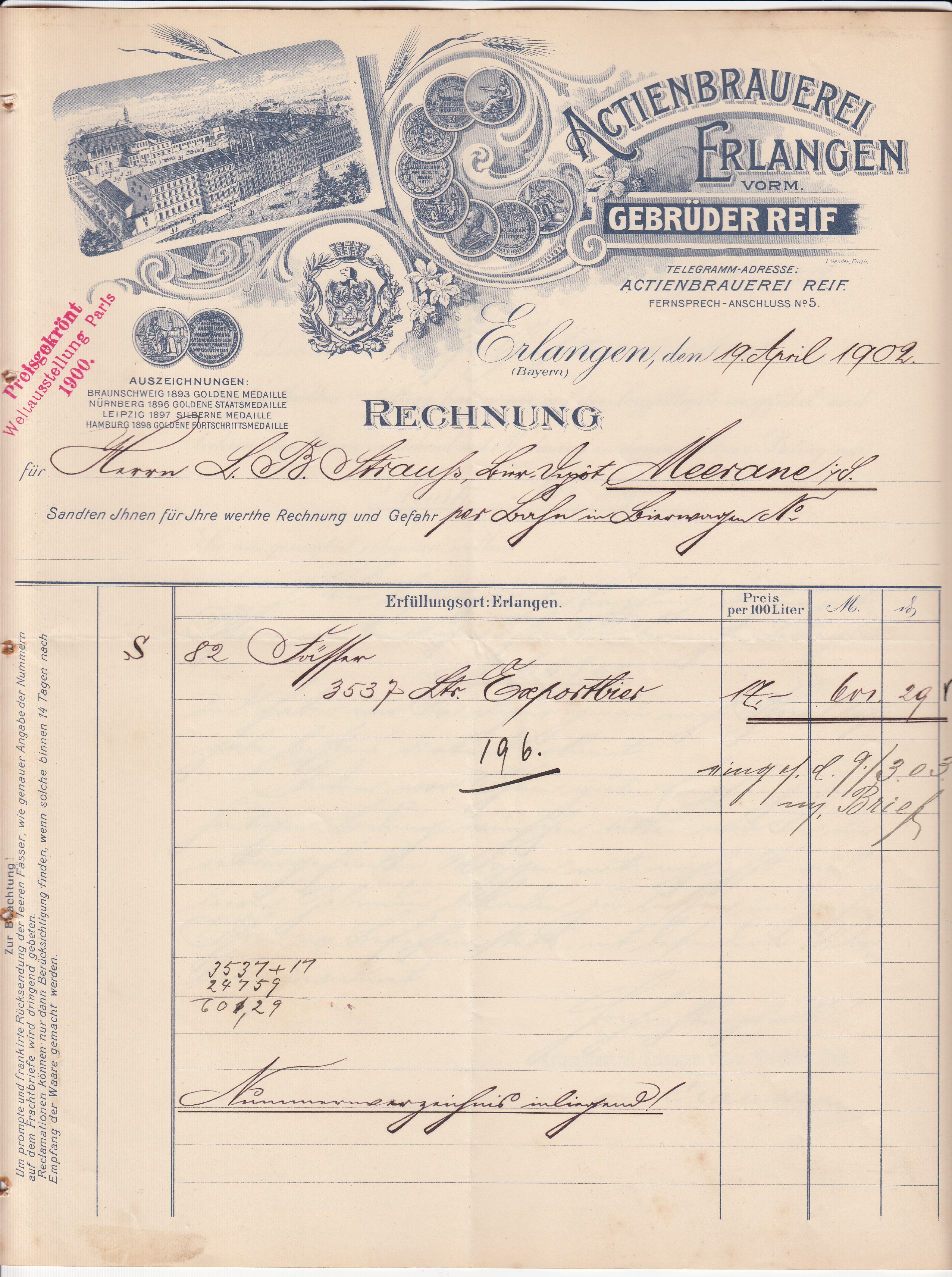 Erlangen Actienbrauerei Erlangen vorm. Gebrüder Reif